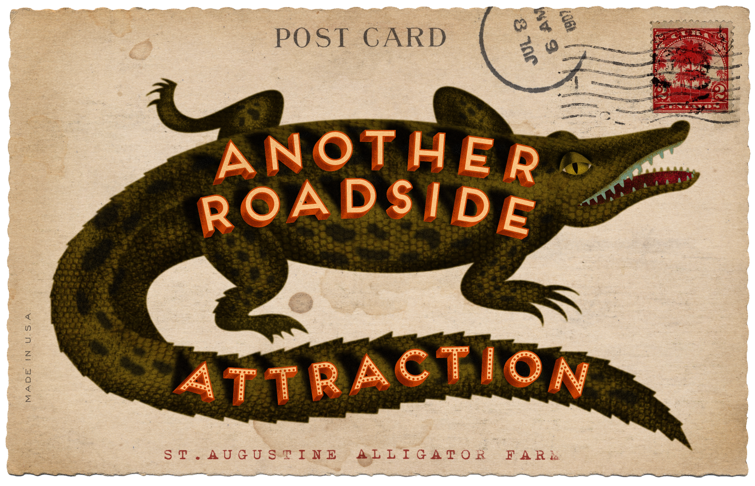Part of a series of three vintage postcard illustrations for a travel article
