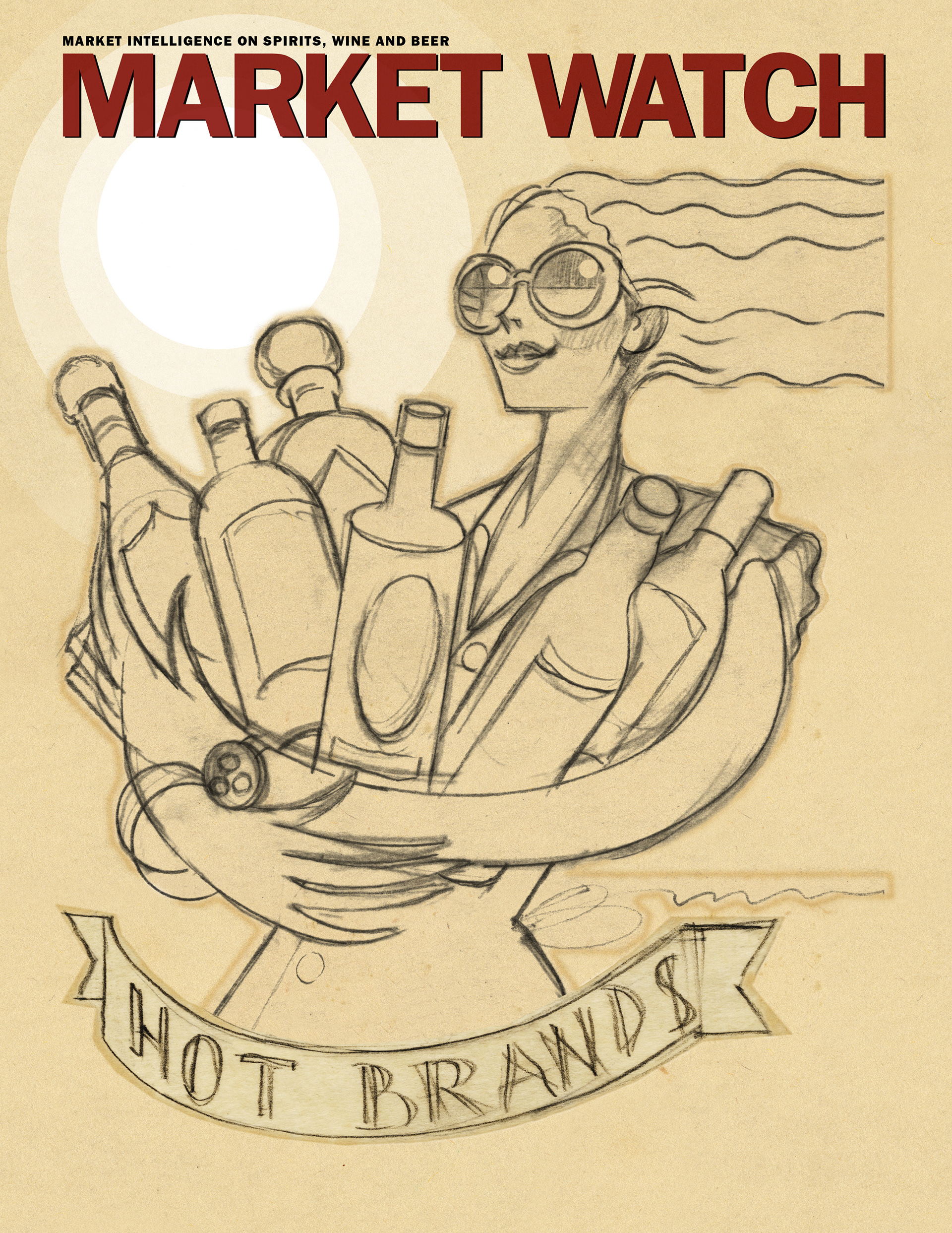 For a wine & spirits trade magazine - new products for the summer. I was thinking about vintage french alcohol posters when I was doing this piece...